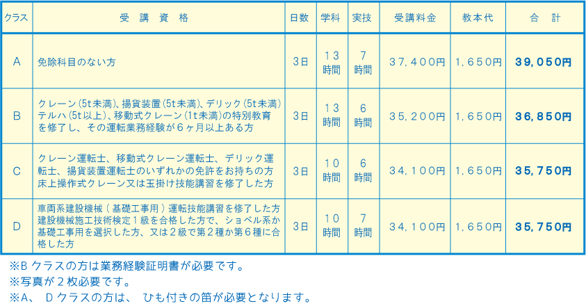 □講習時間・講習料金(税込) 令和7年10月からの料金です。