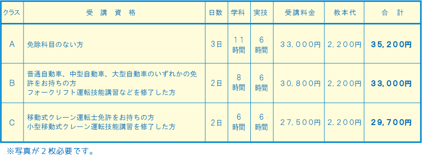 ・実技講習は作業服など動きやすい服装・靴でお願いします。