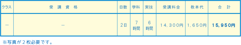 □講習時間・講習料金(税込)