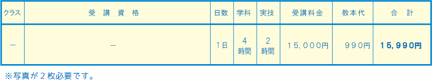 ・実技講習は作業服など動きやすい服装・靴でお願いします。